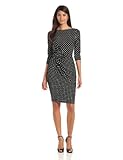 Adrianna Papell Women's Asymmetrical Rouching Dress, Black/White, 8