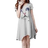 International SizeUS SizeFit Bust GirthFit Waist GirthFit Hip GirthShoulder WidthSleeve LengthTotal LlengthXS232inches24inches34inches15.7inches6.3inches31.1inchesScoop Neck, Short Sleeve, Pullover, Stretchy, Cat Head Patterned, Irregular Hem, Loose, Casual Mini Dress.The model in our picture is about 5.3 Ft tall.Women Dress ONLY, other accessories photographed not included.