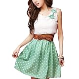 Asian SizeInterational SizeUS SizeBust GirthWaist GirthHip GirthTotal LengthNet WeightSXS032inches24inches34.5inches74cm/ 29.2inches94gMM836inches28inches38.5inches86cm/ 33.8inches127gScoop Neck, Sleeveless, Bowknot Left Upper, Lace Upper, Elastic Waist, Semi Sheer, Dots, Chiffon, Mini Dress.The model in our picture is about 5.2Ft tall.Women Dress and Belt ONLY, other accessories photographed not included.