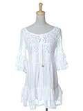An innocent floral embroidered panel top with bell double tiered sleeves and double tiered hem at the dress. The semi sheer fabric of the chiffon would make this dress more suitable as beach wear, but if paired with the right things then you have to spend time to scavenge. DETAILS: - SMALL/MEDIUM FIT - BUST:32" - ACROSS SHOULDER:14" - WAIST:20" - BODY LENGTH:32" - SLEEVE LENGTH:23" - COLOR: Beige - Material: Chiffon