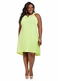 A summer stunner dress in a soft, wear-anywhere knit for comfort in any season, is gorgeous and shows off those amazing curves in a flattering silhouette. Plus size dress features a rolled accent scoop neckline that leads to an embellished keyhole detail at front, a sleeveless design and is finished with an allover solid design and hi-lo hemline.
