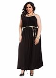 Maxis are the it dress of summer. Plus size maxi features a gold tone braid embellished scoop neckline that leads to similar details at shoulder straps, a solid fabrication throughout and is finished with a self-tie belt at waist.