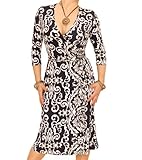 - Classic wrap dress made from a slinky stretch fabric. Tie fastenings around the waist and three quarter length sleeves.