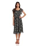 Danny & Nicole Women's Flutter Sleeve Dress with Belt, Black/Cream, 16 Missy