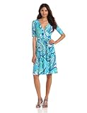 Donna Morgan Women's Elbow Sleeve Mock Wrap Dress, Blue/Green Multi, 12