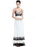 Sexy black white v-neck long evening gown.Adjustable spaghetti straps.Padded enough for "no bra" option.Elastic band in the back for easy fitting.Macrame decorate the waist and hem area.
