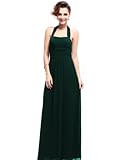 Gorgeous long evening dress.Unadjustable halter style.Padded enough for "no bra" option.Elastic band in the back for easy fitting.Unique ruffles at the bust and waist area.