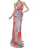 An adjustable halter to tie at the back of neck.Stylish cut! Padded enough to allow the "no bra" option.Multi Colored print has a deep v-neckline, open back.Empired waist and anisomerous ruched that hugs your curves.Ever-Pretty eye-catching dress makes you feel instantly glamorous!
