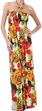 Trendy fashion long maxi dress featuring a tropical floral hawaii inspired graphic print, a beaded halter neckline and a smocked bust. Works great as a casual dress or could be dressed up for a date. Please refer to sizing measurements to ensure the proper fit.