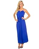 Both casual and elegant, this long solid maxi dress is great for the warm day out. Ruffled details at front with a keyhole neckline and spaghetti straps.