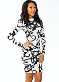Graffiti printed dress that features a slim and stretchy fit. Dress features long sleeves and a longer hemline, and it doesn't include any closures. Length from shoulder to hem: 37 inches. 96% Polyester, 4% Spandex. Hand wash cold, hang dry. Made in USA