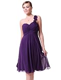Gorgeous cocktail dress.Unadjustable one shoulder style.Non-removable flowers decorate the shoulder area.Padded enough for "no bra" option.Ruffles design at the bust area.