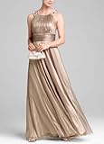 Stand out in this gorgeous gown, great for a mother of the bride or groom! Jewel neckline is embellished with pearls and stones. Ruched waist and full skirt flatter any body type. Iridescent tulle is classic and elegant. Fully lined. Back zip. Imported polyester. Dry clean only.