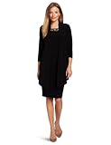 Jones New York Women's Solid 3/4 Sleeve Embellished Neck Mock Jacket Dress, Black, 10