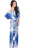 Koh Koh One Shoulder 3/4 Sleeve Graphic Print Long Versatile Cocktail Evening Maxi Dress - XX-Large - Saphire & White