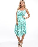 - sccop neck, asymmetrical hemline, elasticized waistband, simple print, spaghetti straps