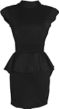 Body-con day dress with ultra-chic detailing. Stretch knit jersey top that has a slight sheen, mock turtleneck with puff cap sleeves, neck ties in back. Sexy Keyhole cutout. Zip waist, peplum pencil skirt has tuxedo tail back.
