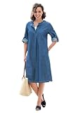 No matter what the season, denim dresses are always in style. Now you can have one for yourself without sacrificing fit and comfort! This plus size dress has roll cuff sleeves that are adjustable for any weather. The henley neck can be buttoned up for cold days or opened to reveal a nice layered tank look underneath. The side seam pockets give you space to store your wallet, keys, ChapStick or anything else you might want to take with you. Best of all, the a-line frame and breathable woven cotto