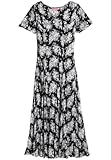 The spectacular, texture-rich crinkled rayon plus size dress looks feminine and fits so comfortably, too. comfortable full-sweep silhouette flares at the waist, giving you room to move 50” long; falls to just above the ankle V-neck flatters the neck and keeps you cool short sleeves have generous width for non-binding fit; armhole is shaped for freedom of movement flares at hem to visually balance silhouette, front and back shaping seams result in a balanced fit silky, washable woven rayon flow
