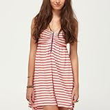 Roxy juniors "sage brush" knit yarn dye stripe/neon fleck dress with center front zip, and smocked back and bust cups. 32" hps.
