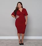 Rumor has it that you're going to be dressed to kill in this figure-hugging dress. Feel sassy and chic with a curve-conscious skirt that's doubled and ruched throughout for an ultra-flattering look. Our Rumor Ruched Dress is made to fit a variety of busts with a surplice neckline and gathering underneath and at the shoulders for fantastic coverage.