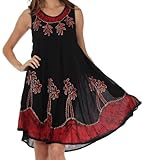 - Sleeveless dress features soft lightweight cotton rayon blend fabric, relaxed fit and embroidered batik design in beautiful colors.