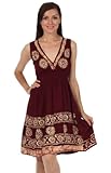 - Sakkas' cotton rayon blend sleeveless dress features smocked empire waist, flattering v-neck and embroidered batik design.