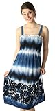 Versatile knee length dress features fun colorful prints, a smocked bust and two shoulder straps.