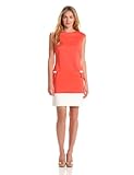 Sandra Darren Women's Sleeveless Techo Stretch Dress, Coral/Ivory, 12