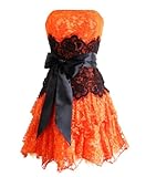 Flattering layered lace short dress with satin tie waist, layered lace ruffles over satin and crinoline under skirt. Fully lined, boned bodice, optional straps and scarf included.