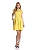 Suzi Chin Women's Short Sleeve Fit And Flare Lace Dress, Daffodil, 8