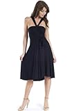 This dress is convertible with tie, length is just below knee. Create twelve different looks, it can be worn as a skirt, a sleeveless dress, a halter neck dress, with tie or no tie in the front, etc...Change the style of this dress to suit your mood -- in just one outfit.94% Rayon, 6% Spandex constructionWash in cold water, hang dryMade in USA